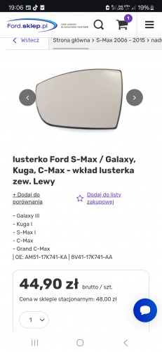- 5/5Opinia potwierdzona zakupemhttps://ford.sklep.pl/product-pol-23348-lusterko-Ford-S-Max-Galaxy-Kuga-C-Max-wklad-lusterka-zew-Lewy.html. - czy te lusterko jest przyciemniane? Pozdrawiam2025-07-06